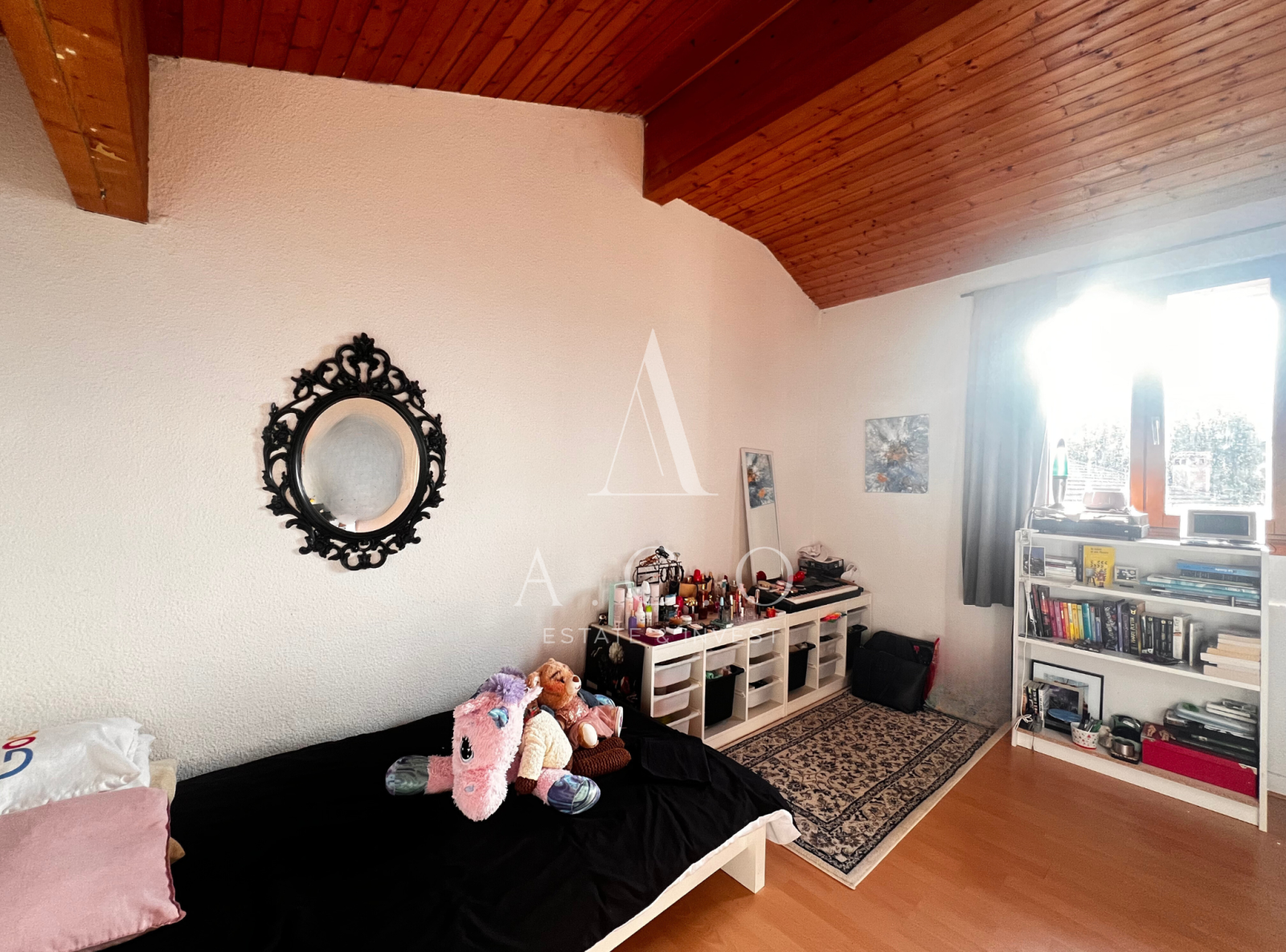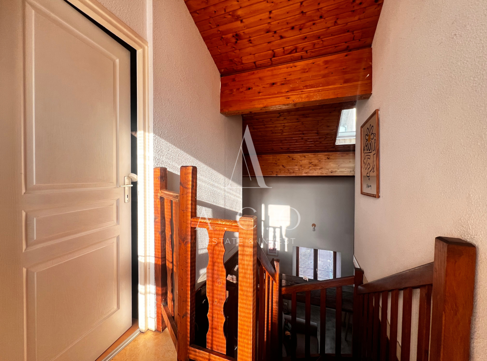 À l’étage, un palier distribue deux chambres mansardées, chacune offrant un cadre cosy, ainsi qu’une salle d'eau avec toilettes. La climatisation à l’étage garantit un confort optimal tout au long de l’année, quelle que soit la saison.